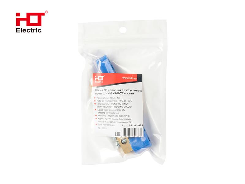 Шина N "ноль" на двух угловых изол ШНИ-6х9-6-У2-синий (уп/1 шт.) HLT