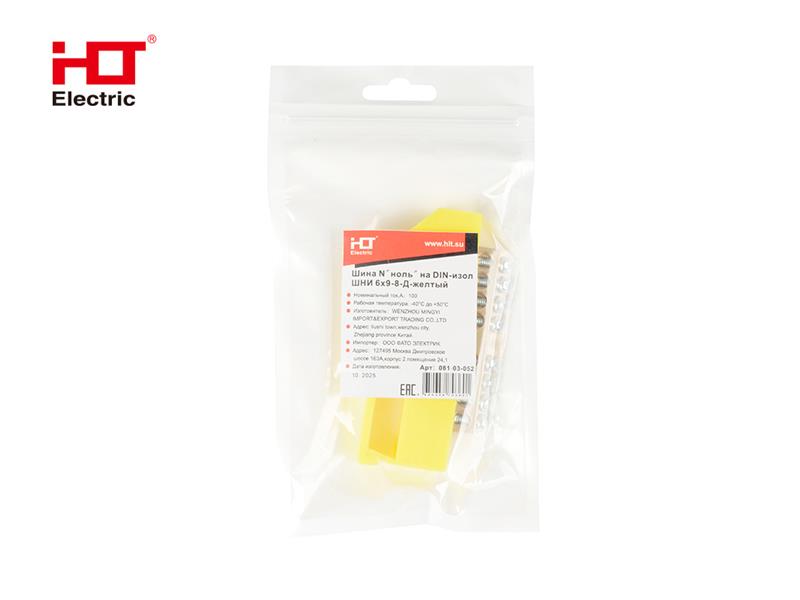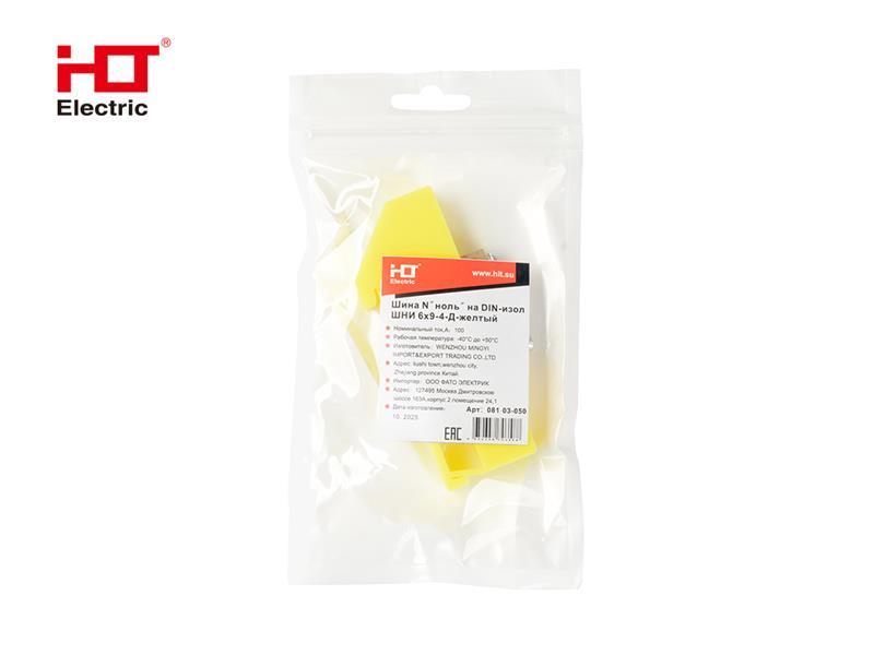 Шина N "ноль" на DIN-изол ШНИ-6х9-6-Д-желтая (уп/1 шт.) HLT