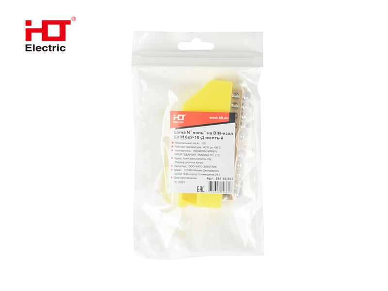 Шина N "ноль" на DIN-изол ШНИ-6х9-10-Д-желтая (уп/1 шт.) HLT