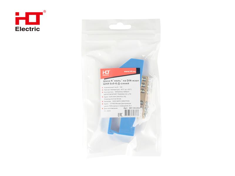 Шина N "ноль" на DIN-изол ШНИ-6*9-6-Д-синяя (уп/1 шт.) HLT