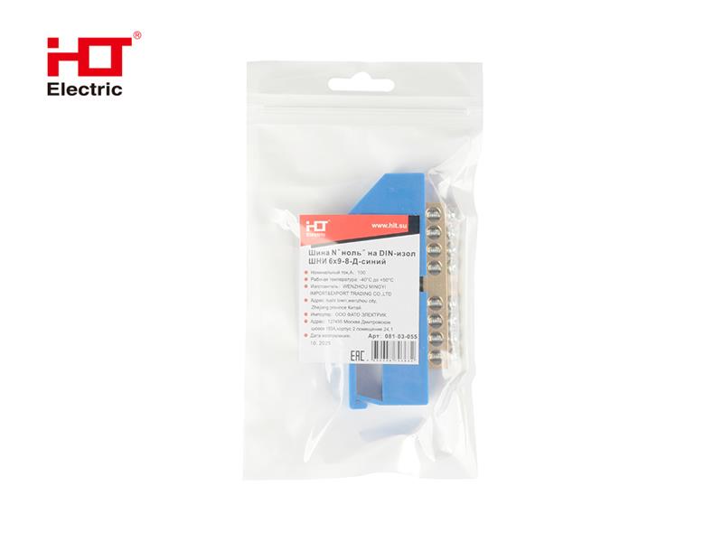 Шина N "ноль" на DIN-изол ШНИ-6*9-8-Д-синяя (уп/1 шт.) HLT