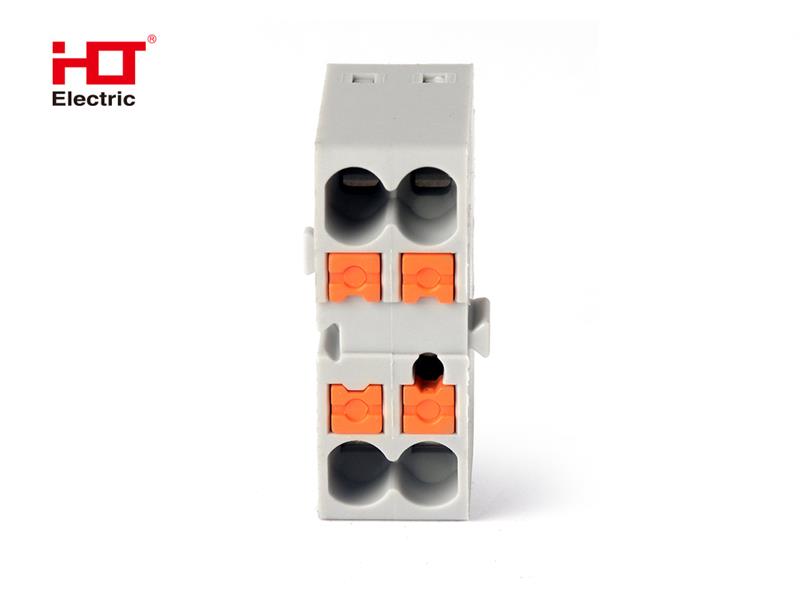 Пружинный контакт обеспечивают постоянное самозажимное соединение, позволяет легко и быстро производить подключение и отключение проводов;