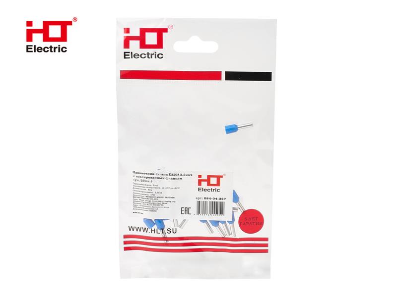 Наконечник-гильза Е7508 0,75мм² с изолированным фланцем (уп./20 шт) HLT